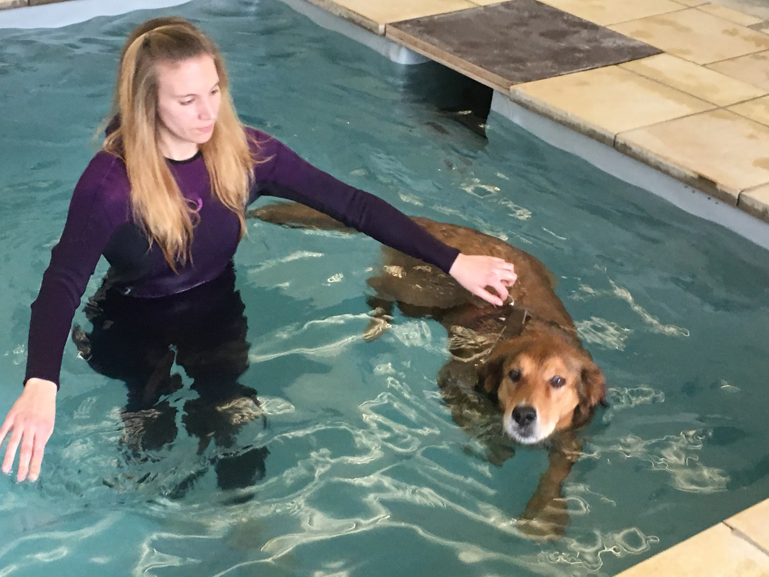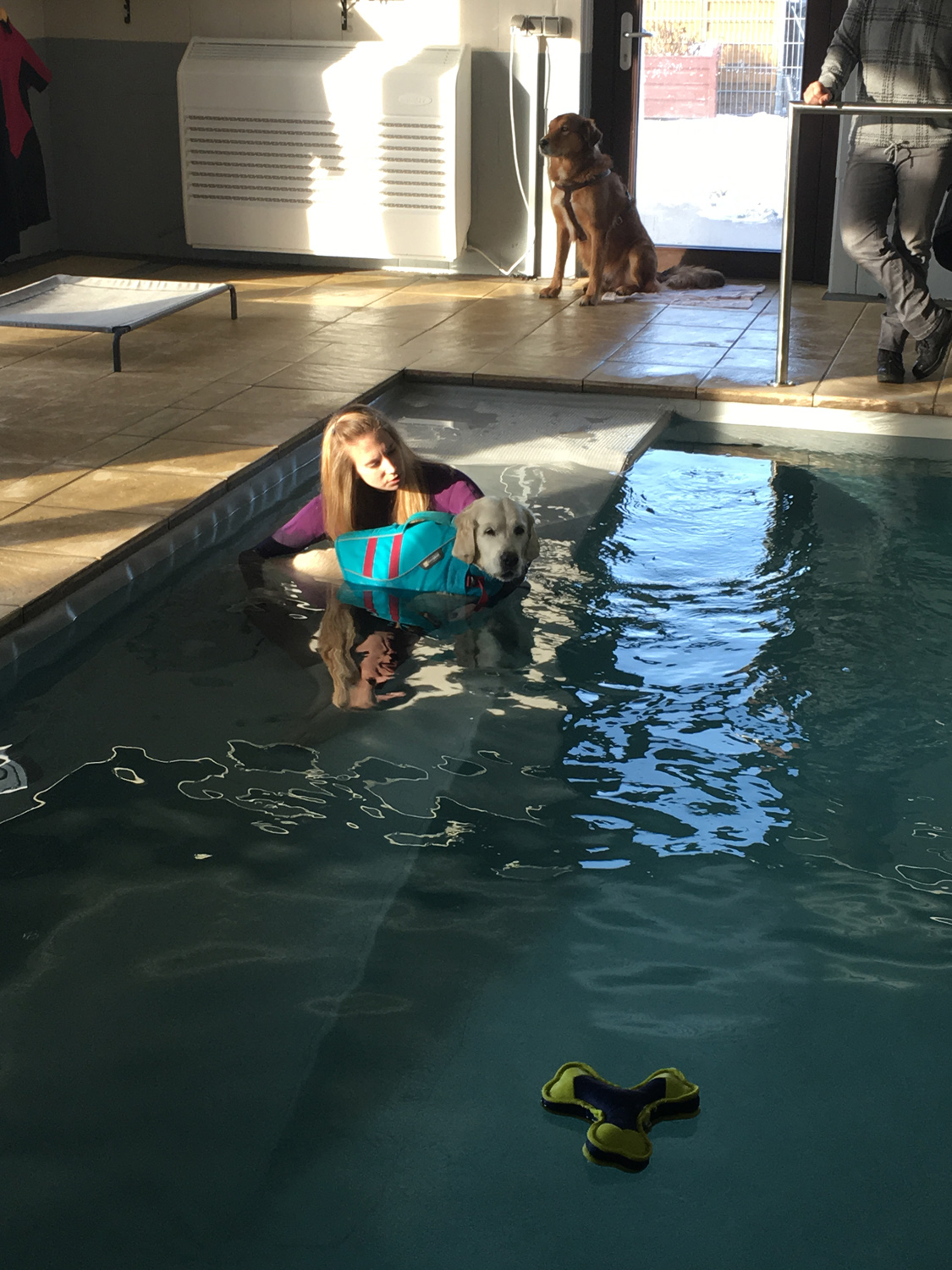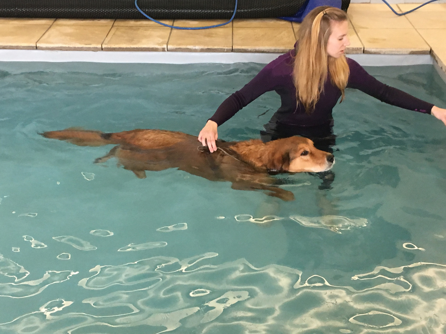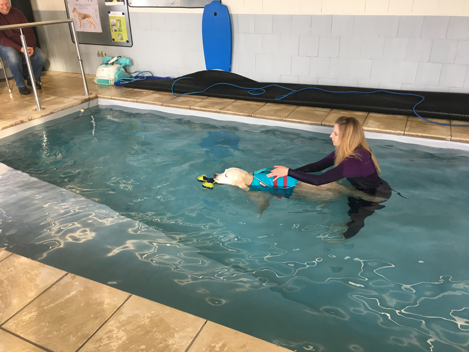 Die Gelenke des Hundes werden bei der Hydrotherapie maximal geschont und entlastet bewegt, die Muskulatur hingegen wird gestärkt und durchblutet.