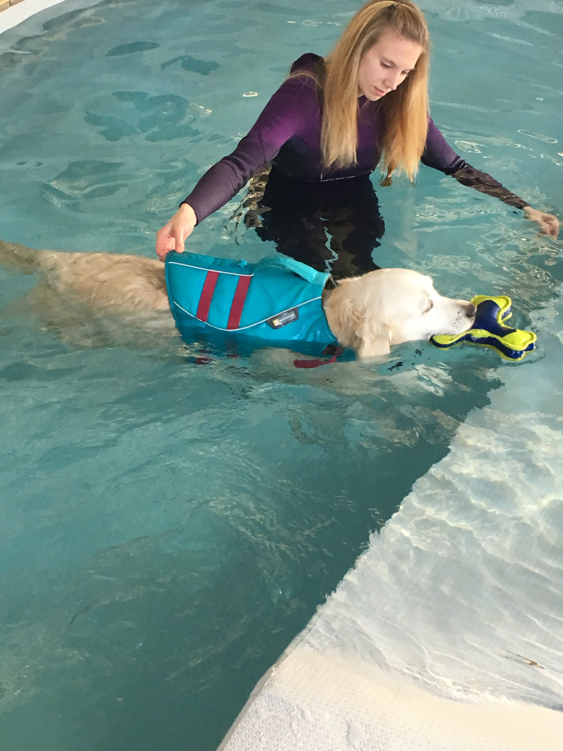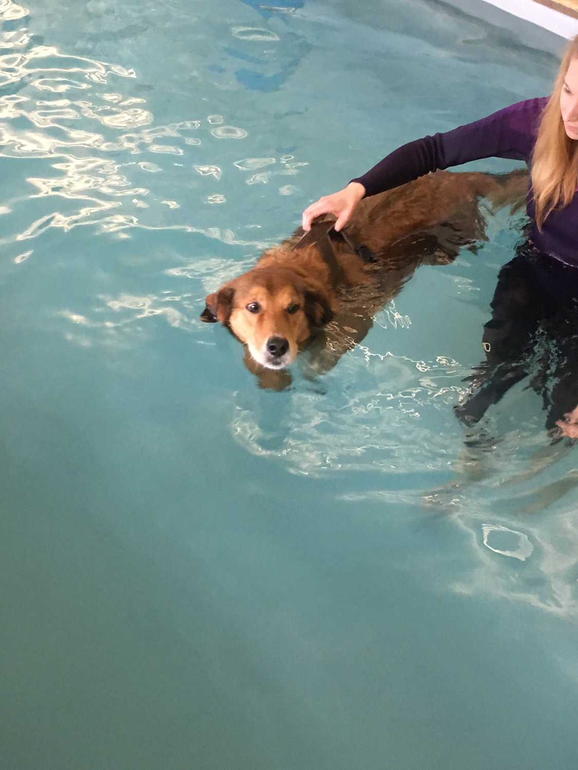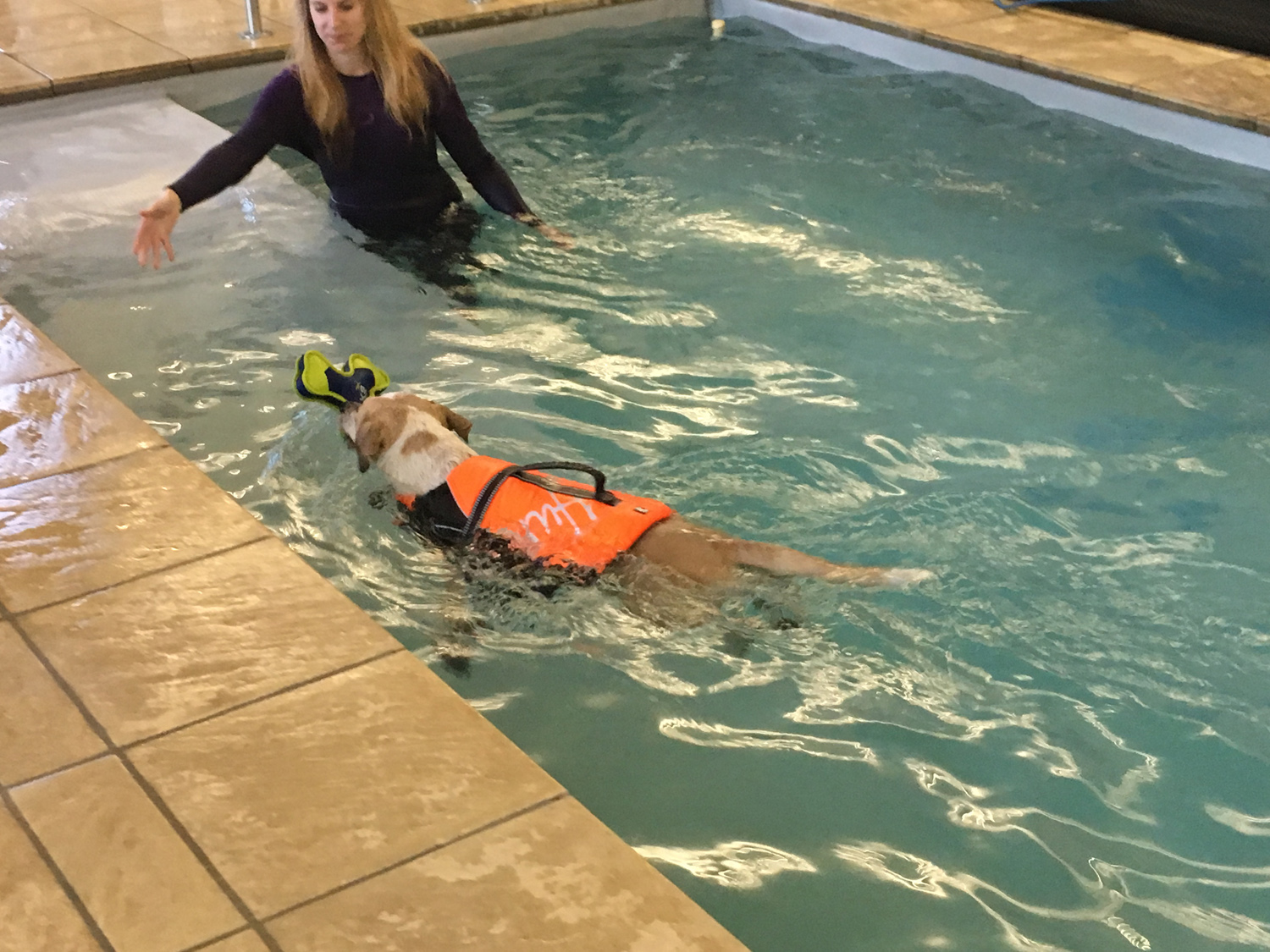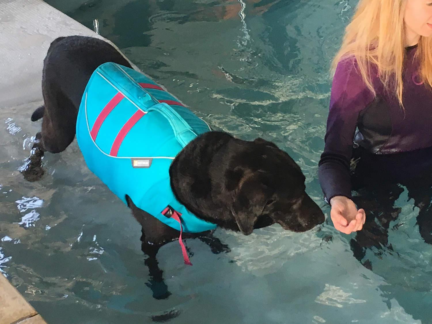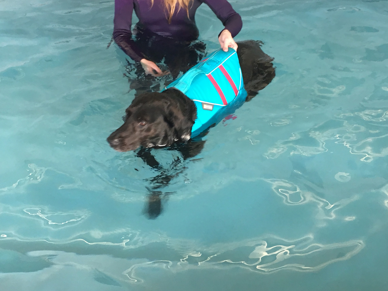 Die Gelenke des Hundes werden bei der Hydrotherapie maximal geschont und entlastet bewegt, die Muskulatur hingegen wird gestärkt und durchblutet.